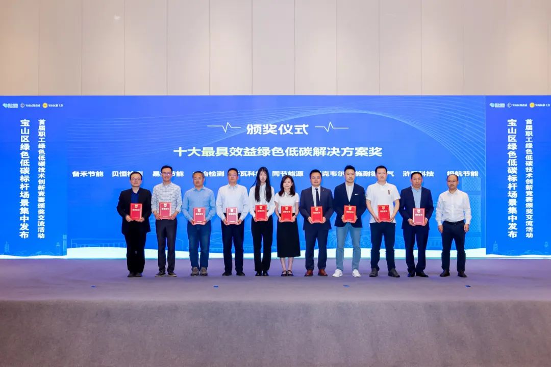 本次活動由上海市發(fā)展和改革委、上海市總工會指導(dǎo),寶山區(qū)發(fā)展改革委、寶山區(qū)總工會主辦。作為全市首個以實地場景為賽題、首個覆蓋工廠、樓宇、醫(yī)院、學(xué)校等多場景、首個實現(xiàn)技術(shù)落地與碳信用開發(fā)閉環(huán)的綠色低碳競賽,本次活動歷時半年,吸引了100多家單位參與。競賽通過“技術(shù)產(chǎn)品”“解決方案”“應(yīng)用場景”三大賽道,挖掘出一批兼具創(chuàng)新性與實用性的低碳技術(shù)成果?;顒咏視粤烁傎愂笞罹邉?chuàng)新綠色低碳技術(shù)產(chǎn)品獎、最具市場潛力綠色低碳技術(shù)產(chǎn)品獎、十大最具潛力綠色低碳應(yīng)用場景獎、十大最具效益綠色低碳解決方案獎。