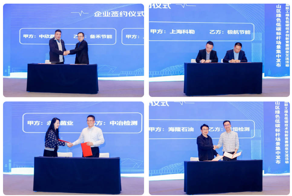 本次競賽活動,通過場景發(fā)現(xiàn)和解決方案比拼,促成了多項合作意向。中欣晶圓與備禾節(jié)能、上??评张c極航節(jié)能、永大菌業(yè)與中冶檢測、海隆石油鉆具與貝恒檢測4組單位簽署意向合作協(xié)議,推動職工創(chuàng)新創(chuàng)造成果與需求精準(zhǔn)對接,實現(xiàn)“技術(shù)端”與“需求端”的強強聯(lián)合。