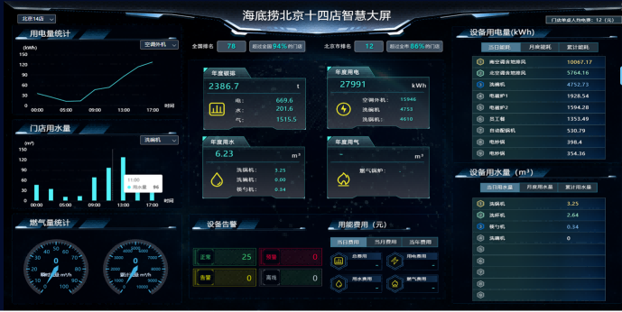 海底撈門店已實現(xiàn)碳排放的實時監(jiān)測與自動化統(tǒng)計,通過動態(tài)采集門店的能源消耗數(shù)據(jù)(水、電、燃氣),自動換算為碳排放量,并生成可視化碳報表。不僅解決了人工統(tǒng)計的滯后性與誤差問題,更能為不同門店制定精準的節(jié)能降碳策略。