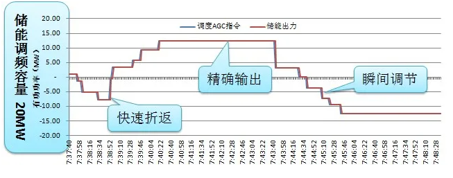 電儲能系統(tǒng)在額定功率范圍內(nèi),都可以在1s 內(nèi)以99%以上的精度完成指定功率的輸出,其綜合響應(yīng)能力完全滿足在AGC 調(diào)頻的時間尺度內(nèi)的功率變換需求,大幅超過常規(guī)火電廠的調(diào)節(jié)能力。如果采用電儲能調(diào)頻技術(shù), AGC 跟蹤曲線可以幾乎與AGC指令曲線重合,即調(diào)節(jié)方向、調(diào)節(jié)偏差以及調(diào)節(jié)延遲等問題將不會出現(xiàn)。