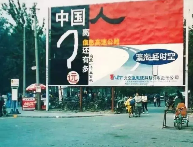 最后再說一個故事,當(dāng)年那些聰明人紛紛買了比爾蓋茨的《未來之路》,最后真的按照比爾說的“信息高速公路”去做的某個人,成立一家公司叫做瀛海威,它的廣告牌當(dāng)年極其具有感染力,如下圖:
