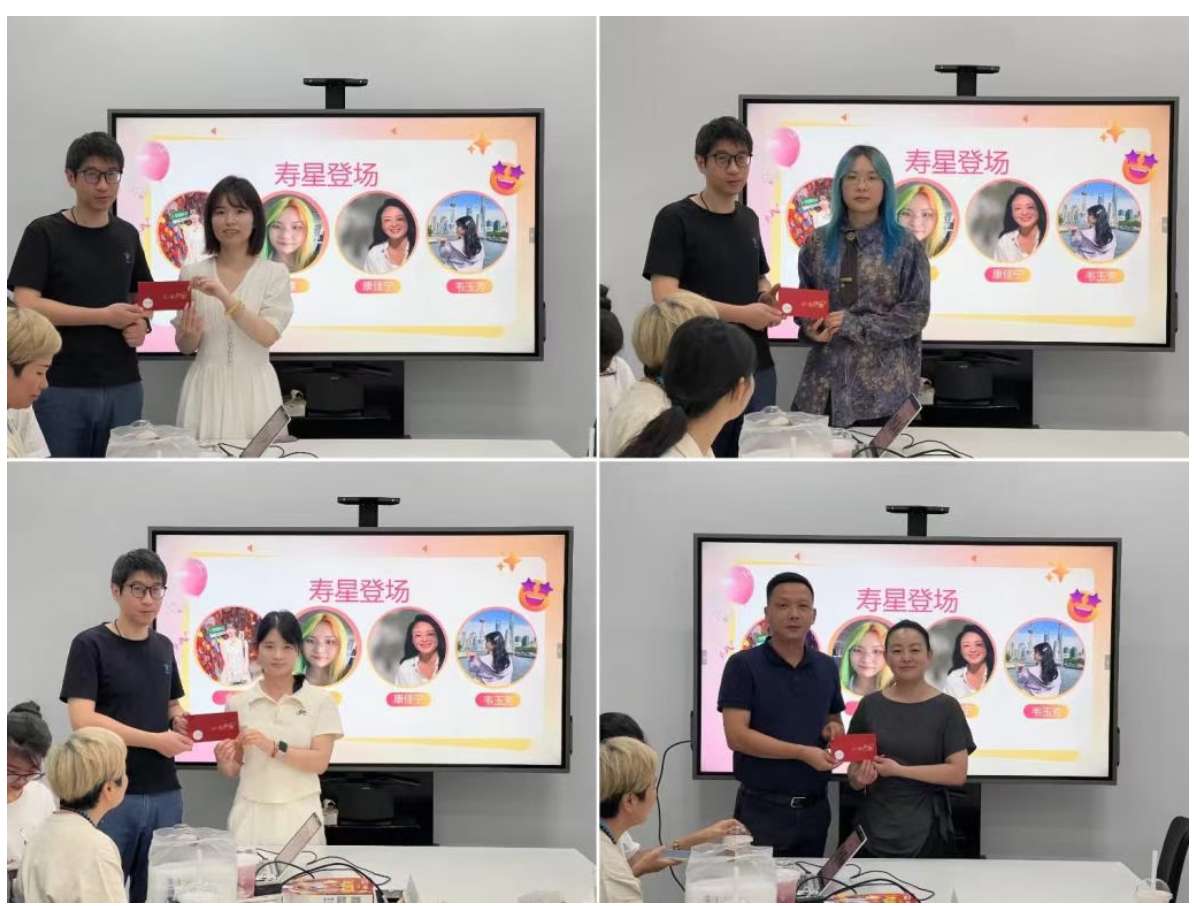臨近 9 月底,月度生日會也如期而至?;顒蝇F(xiàn)場提前布置妥當:奶茶披薩排排放在桌子上,香甜的奶油蛋糕擺在C位,旁邊還放著為壽星們準備的賀卡,儀式感拉滿。隨著 “生日快樂” 歌響起,九月壽星們圍站在蛋糕旁,閉眼許下心愿,共同吹滅蠟燭。