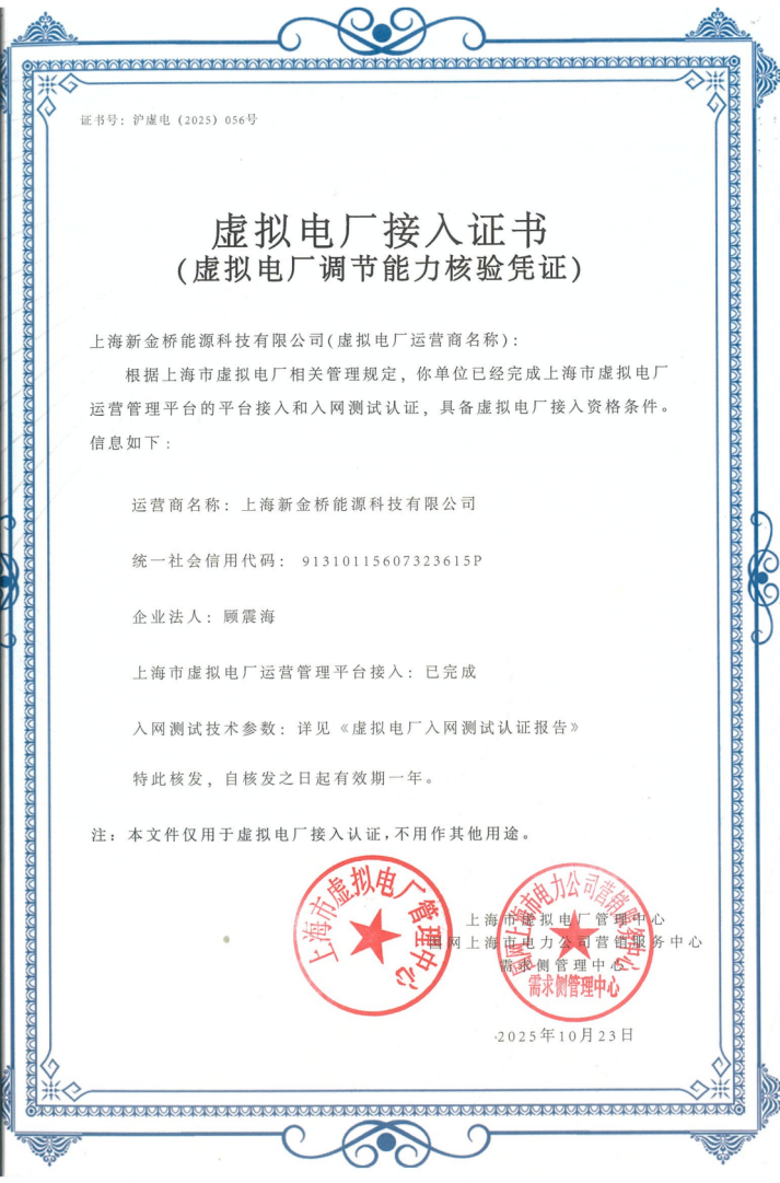 近日,上海新金橋能源科技有限公司順利通過上海市負(fù)荷管理中心及電力交易中心技術(shù)準(zhǔn)入,成功獲得“虛擬電廠運營商資質(zhì)”,成為上海市第56家虛擬電廠運營商。這一里程碑式成果的達(dá)成,得益于新金橋能源與千瓦科技彼此在技術(shù)方案與資質(zhì)申報環(huán)節(jié)的緊密配合和專業(yè)努力。