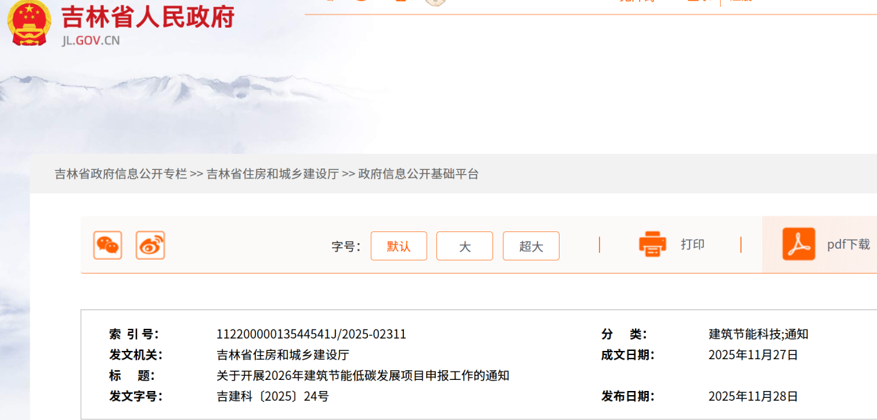 2025年11月吉林省發(fā)布2026年建筑節(jié)能低碳發(fā)展項目申報工作的通知。