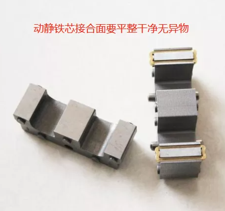 完好的交流接觸器在得電吸合時(shí),是沒有聲音的,當(dāng)在吸合時(shí),發(fā)出吱吱聲,原因是動(dòng)鐵芯和靜鐵芯表面有污垢或;復(fù)位動(dòng)鐵芯的壓簧受力不均勻;動(dòng)鐵芯移動(dòng)通道不暢等。造成動(dòng)鐵芯靜鐵芯接觸表面不切合,有間隙,使磁路回路的磁阻增加,降低了磁吸力,為克服此種現(xiàn)象,線圏中電流就會(huì)增大,來阻止磁吸力下降,不斷糾正。而發(fā)出的吱吱聲,正是電流聲與復(fù)位壓簧顫振的共振發(fā)出的,動(dòng)鐵芯與靜鐵芯縫隙越大,吱吱聲越大。