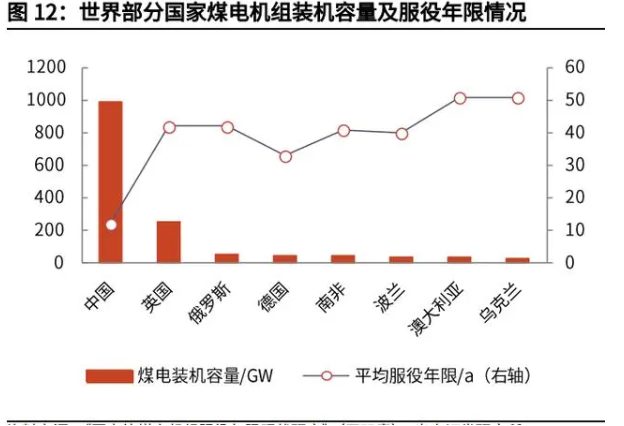 在陡峭的碳排放量下降曲線背后,是規(guī)模化的經(jīng)濟結(jié)構(gòu)轉(zhuǎn)型。這意味著我國當(dāng)前 經(jīng)濟結(jié)構(gòu)下相當(dāng)規(guī)模的存量資產(chǎn)將失去原有功能。煤電資產(chǎn)擱淺的問題,表明了轉(zhuǎn)型需經(jīng)歷陣痛。一方面,從能源結(jié)構(gòu)和自身稟賦 來看,我國的能源消耗以煤為主,煤電發(fā)電量在 2019 年占總發(fā)電量的 65%,遠(yuǎn) 超發(fā)達(dá)國家;另一方面,我國煤電機組的平均服役年限僅 12 年,而發(fā)達(dá)國家普 遍達(dá)到 40 年以上。更快的碳排放量下降斜率,意味著將會有大量的未達(dá)到退役 年限的煤電資產(chǎn)提前“擱淺”。根據(jù)牛津大學(xué) 2017 年研究,在不同的情景假設(shè)下,我國煤電擱淺資產(chǎn)規(guī)模估算 可能高達(dá) 30,860-72,010 億元(合 4,490-10,470 億美元),相當(dāng)于中國 2015 年 GDP 的 4.1-9.5%。由于近年來我國仍在新建煤電機組,實際擱淺規(guī)模可能更 大。