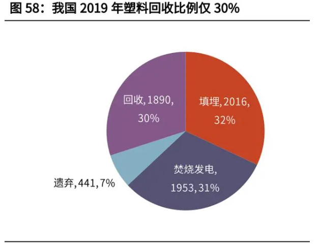 2.3、 回收利用:綠色低碳的循環(huán)經(jīng)濟再生資源的回收利用可以有效減少初次生產(chǎn)過程中的碳排放。目前來看,市場潛 力主要集中在三大領(lǐng)域:1)高耗能行業(yè)(鋼鐵、水泥、鋁和塑料)的產(chǎn)品再生;2)廢棄物(秸稈、林業(yè)廢棄物、生活垃圾)的能源化利用;據(jù)世界鋼鐵協(xié)會預(yù)測,從中長期來看,過去二十年中國鋼材消費量的迅速增長, 將帶動中國國內(nèi)的廢鋼資源快速增長。在未來數(shù)年里,中國國內(nèi)的廢鋼供應(yīng)量可 滿足中國的煉鋼需求。鋼鐵行業(yè)的電氣化趨勢(電爐代替高爐)與廢鋼的利用屬于同一路徑。對比發(fā)達(dá) 國家,我國的電爐鋼產(chǎn)量占比處于較低水平。電解鋁的碳排放來源主要包括:電力消耗、碳陽極消耗、陽極效應(yīng)導(dǎo)致全氟化碳 排放。再生鋁可以有效減少初次生產(chǎn)的能耗與碳排放,目前我國的再生鋁產(chǎn)量占 比同樣處于較低水平。在化工行業(yè)的數(shù)千種產(chǎn)品中,僅氨、甲醇和 HVC(高價值化學(xué)品,包括輕烯烴 和芳烴)三大類基礎(chǔ)化工產(chǎn)品的終端能耗總量就占到該行業(yè)的四分之三左右。據(jù)上海市再生資源回收利用行業(yè)協(xié)會披露,2019 年我國產(chǎn)生廢塑料 6300 萬噸, 回收量 1890 萬噸,回收率僅 30%。根據(jù)能源轉(zhuǎn)型委員會研究,2050 年,中國的塑料需求中 52%可由回收再利用的 二次塑料提供,初級塑料產(chǎn)量與國際能源署的照常發(fā)展情景中的回收率水平下的 產(chǎn)量相比減少 45%,HVC 和甲醇的需求分別較照常發(fā)展情景大幅減少 40%和 18%。