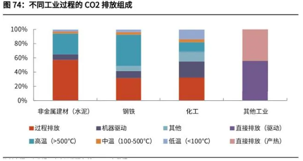 除了能源使用(主要是化石燃料燃燒及電力/熱力使用),工業(yè)過程碳排放也是 重要的二氧化碳來源,2017 年占比 13%。工業(yè)過程碳排放與各個行業(yè)采用的生產(chǎn)工藝直接相關(guān)。(1)如鋼鐵行業(yè):含碳原料(電極、生鐵、直接還原鐵)和溶劑的分解和氧化;(2)電解鋁:碳陽極消耗、陽極效應(yīng)導(dǎo)致全氟化碳排放;(3)水泥:污水污泥等廢棄物里所含有的非生物質(zhì)碳的燃燒、原材料碳酸鹽分 解產(chǎn)生的二氧化碳排放、生料中非燃料碳煅燒。相比于“能源碳”,“過程碳”的去除更加困難。原因在于:(1)生產(chǎn)工藝深度整合,對工藝過程的某一部分的改變都伴隨著過程其他部分 的改變;(2)生產(chǎn)設(shè)施的使用壽命很長,通常超過 50 年(定期維護(hù))。改變現(xiàn)有場地 的工藝需要昂貴的重建或改造;(3)大宗商品全球交易,水泥、鋼鐵、氨和乙烯是大宗商品,在采購決策中, 成本是決定性因素。除水泥外,這些產(chǎn)品都在全球范圍內(nèi)進(jìn)行交易。一般來說, 在所有四個部門中,外部性都沒有被考慮在內(nèi),而且還沒有為可持續(xù)或脫碳產(chǎn)品 支付更多費用的意愿。