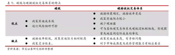 這兩種機制在減排機理上有本質(zhì)區(qū)別。(以下介紹來自華寶證券)碳稅指政府指定碳價,市場決定最終排放水平,故最終排放量的大小具有不確定性;碳排放權(quán)交易體系指政府確定最終排放水平,由市場來決定碳價,故碳價大小是不確定的。正是由于這種區(qū)別,兩種手段具有不同的特點。開征碳稅更適用于管控小微排放端,碳排放權(quán)交易體系則適用于管控排放量較大的企業(yè)或行業(yè)。這兩種政策是可以結(jié)合使用的。