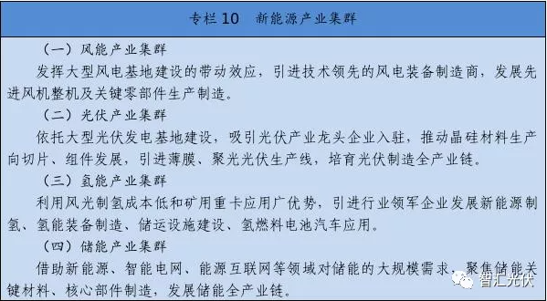 發展壯大新能源產業。加強風電關鍵設備及零部件研發和生產,有序發展分布式光伏發電。推進風能、光伏發電進行電解水制氫。