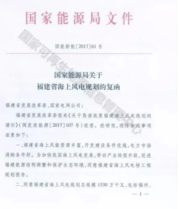 早在2017年,國家能源局發布關于福建省海上風電規劃的復函中,同意福建省海上風電規劃總規模1330萬千瓦,包括福州、漳州、莆田、寧德和平潭所轄海域17個風電場。到2020年底,福建省海上風電裝機規模要達到200萬千瓦以上,到2030年底要達到300萬千瓦以上。