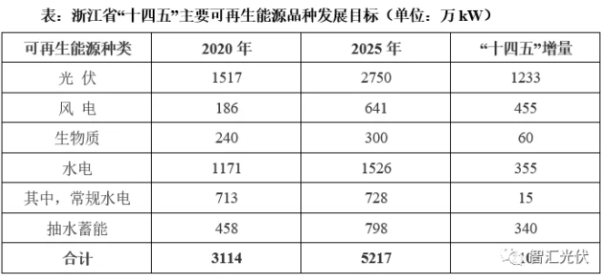5月7日,浙江省發改委、 浙江省能源局下發《浙江省可再生能源發展“十四五”規劃》(詳見《新增12GW光伏!浙江省可再生能源“十四五”規劃出臺》),提出到“十四五”末: