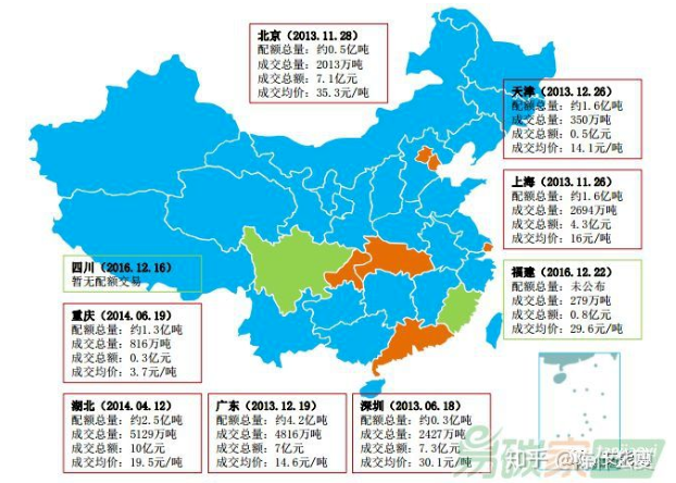 試點階段進行碳配額交易,交易品種為地方配額現貨和中國核證減排量(ccer)現貨,以地方配額為主導。2011年起,先后在北京市、天津市、上海市、重慶市、廣東省、湖北省、深圳市啟動7個碳交易試點。7個試點啟動以來,碳交易市場十分活躍,截止到2017年12月31日,七省市試點碳市場及福建碳市場配額累計成交量為1.85億噸。