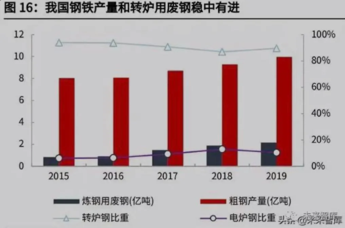2016 年開展的打擊“地條鋼”的行動和環保督察,對中頻爐及散亂污進行了集 中整治,雖然在一定程度抑制了地條鋼使用廢鋼的需求,但也進一步鼓勵了向電 弧爐路線轉變提升了廢鋼的需求,屬于廢鋼需求側優化的過程。