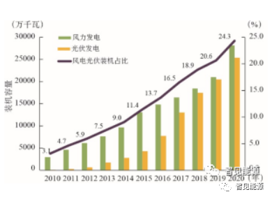 “十一五”以來,我國在風電、光伏發電、新能源汽車等領域建立了較穩定的扶持政策,形成了比較穩定的市場預期,吸引了各類社會資本投入新能源開發利用。近年來,我國新增和累計風電、光伏發電裝機規模持續穩居世界第一。截至2020年底,我國風電和光伏發電累計裝機分別達到2.8億千瓦和2.5億千瓦,在全球占比均超過三分之一;風電和光伏總裝機在全國總發電裝機中的占比近四分之一。2020年新能源汽車銷量達到137萬輛,連續六年銷量全球第一;新能源汽車保有量達到492萬輛,占全球的四成以上。