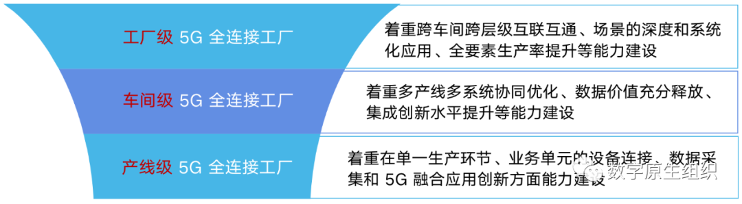 建設(shè)路徑一方面是開展分類分級(jí)建設(shè),支持企業(yè)建設(shè)產(chǎn)線級(jí)、車間級(jí)、工廠級(jí)等不同類型 5G 全連接工廠;另一方面是加快重點(diǎn)行業(yè)推廣,在電子設(shè)備制造、裝備制造、鋼鐵、采礦、電力等重點(diǎn)行業(yè)和領(lǐng)域,推動(dòng)發(fā)展基礎(chǔ)較好、需求較明確的企業(yè)主體,率先建設(shè) 5G 全連接工廠,同時(shí)鼓勵(lì)更多行業(yè)企業(yè)積極探索5G 在工業(yè)生產(chǎn)各環(huán)節(jié)創(chuàng)新應(yīng)用。