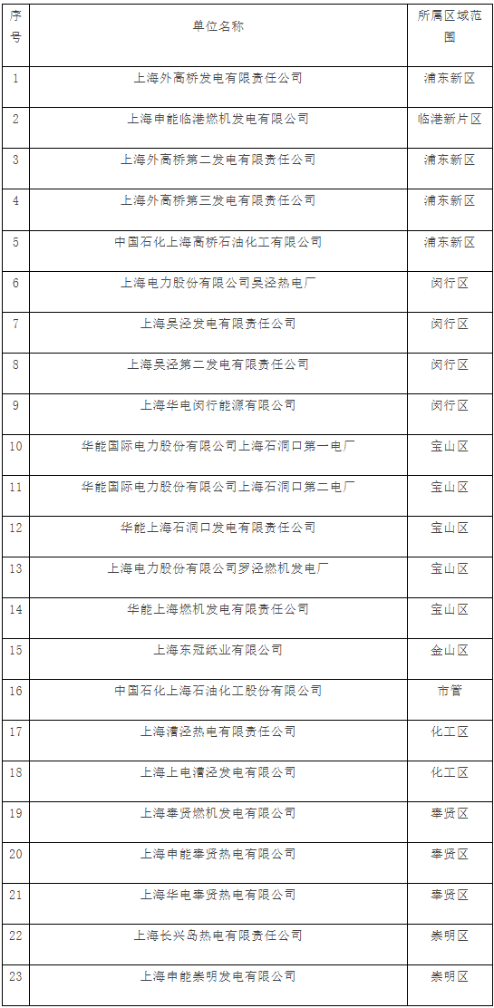 上海市納入2022年度全國碳排放權(quán)交易市場(chǎng)配額管理的重點(diǎn)排放單位名單