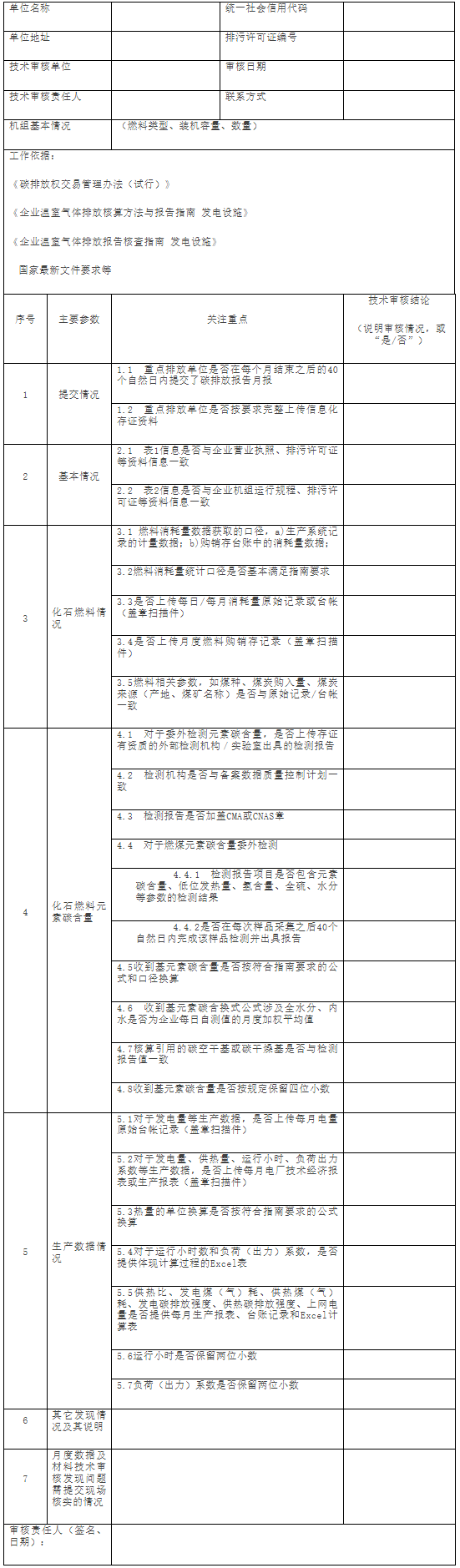 重點(diǎn)排放單位碳排放數(shù)據(jù)質(zhì)量技術(shù)審核工作表