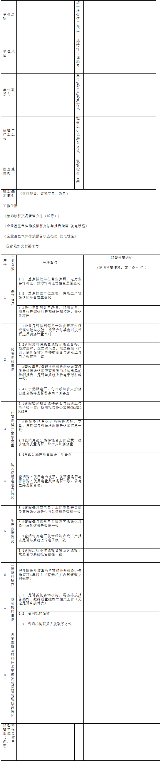 重點(diǎn)排放單位碳排放數(shù)據(jù)質(zhì)量執(zhí)法監(jiān)督檢查工作表