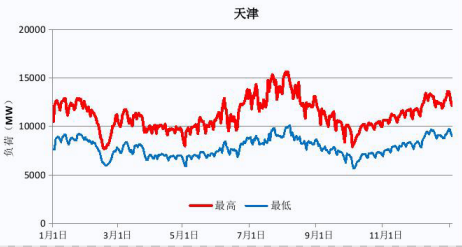| 全年日最高、最低負(fù)荷曲線 | 用電最高 | 8月夏季最炎熱的時(shí)候用電量最高 |
