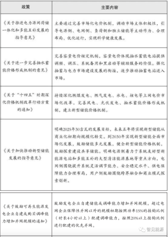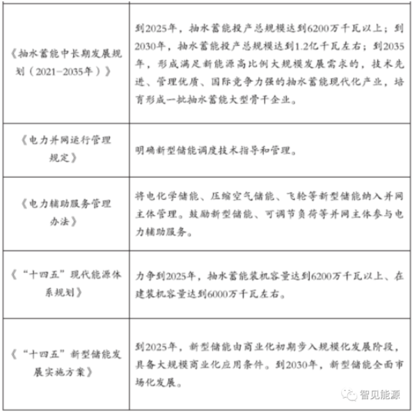 據(jù)中國能源研究會儲能專委會不完全統(tǒng)計,截至2021年底,中國已投運的儲能項目累計裝機容量(包括物理儲能、電化學儲能以及熔融鹽儲熱)達到45.93吉瓦,同比增長29%。其中,抽水蓄能新增規(guī)模居首,為8.05吉瓦;電化學儲能緊隨其后,投運規(guī)模達1.87吉瓦/3.49吉瓦時,規(guī)劃在建規(guī)模超過20吉瓦。新能源配置儲能以及獨立儲能是新增裝機的主要支撐。隨著新型電力系統(tǒng)的構建,新能源裝機規(guī)模不斷增長,新能源消納壓力隨之增大,大規(guī)模儲能電站建設可有效緩解新能源消納并網(wǎng)難題、平抑新能源出力波動,百兆瓦級別的儲能電站開發(fā)正在加速。2021年以來,儲能政策頻頻發(fā)布。國家層面明確“十四五”及中長期新型儲能發(fā)展目標與重點任務,為儲能在“十四五”時期的發(fā)展明確了方向。2022年3月21日,國家發(fā)展改革委、國家能源局正式印發(fā)《“十四五”新型儲能發(fā)展實施方案》,提出到2025年,新型儲能從商業(yè)化初期向規(guī)模化發(fā)展轉變,到2030年,實現(xiàn)新型儲能全面市場化發(fā)展。22日,《“十四五”現(xiàn)代能源體系規(guī)劃》發(fā)布,明確到2025年,非化石能源消費比重提高到20%左右,非化石能源發(fā)電量比重達到39%左右;抽水蓄能裝機容量達到6200萬千瓦以上、在建裝機容量達到6000萬千瓦左右。根據(jù)《抽水蓄能中長期發(fā)展規(guī)劃(2021-2035年)》,到2025年,中國抽水蓄能投產(chǎn)總規(guī)模6200萬千瓦以上;到2030年,投產(chǎn)總規(guī)模1.2億千瓦左右;根據(jù)《關于加快推動新型儲能發(fā)展的指導意見》,到2025年,中國抽水蓄能以外的新型儲能裝機容量達到3000萬千瓦以上。這在國家層面首次明確了新型儲能的裝機目標。在國家層面出臺政策的同時,各地也根據(jù)當?shù)啬茉捶A賦制定相關目標。青海省提出到2025年建成并網(wǎng)新型儲能規(guī)模達到600萬千瓦以上,內(nèi)蒙古的目標是500萬千瓦,山東的目標是450萬千瓦,三省目標占到全國目標的一半。部分省份雖未明確儲能具體裝機規(guī)模,但也基本按照新能源裝機比例10%~20%、連續(xù)儲能時長2小時以上進行配置。在電價政策方面,《關于“十四五”時期深化價格機制改革行動方案的通知》首次明確要建立新型儲能價格機制,《關于進一步完善抽水蓄能價格形成機制的意見》明確以競爭性方式形成電量電價,將容量電價納入輸配電價回收。當前,針對抽水蓄能國家已經(jīng)出臺了容量電價機制,但發(fā)展空間更大的新型儲能卻無法同等享受容量電價政策,新型儲能電源和負荷雙重屬性使其參與市場身份難以界定,價格機制的形成難度很大。此外,2021年7月29日,國家發(fā)展改革委發(fā)布《關于進一步完善分時電價機制的通知》,要求進一步完善峰谷電價機制,合理確定峰谷電價價差。上年或當年預計最大系統(tǒng)峰谷差率超過40%的地方,峰谷電價價差原則上不低于4:1,其他地方原則上不低于3:1;尖峰電價在峰段電價基礎上上浮比例原則上不低于20%。隨后,全國各地紛紛出臺相應政策,均在不同程度上拉大峰谷價差電價。3.加快新能源與儲能協(xié)調(diào)發(fā)展《關于2021年風電、光伏發(fā)電開發(fā)建設有關事項的通知》首次將新型儲能作為市場化落實并網(wǎng)條件之一。《關于鼓勵可再生能源發(fā)電企業(yè)自建或購買調(diào)峰能力增加并網(wǎng)規(guī)模的通知》首次在國家層面明確自建/購買調(diào)峰儲能的比例,要求超過電網(wǎng)企業(yè)保障性并網(wǎng)以外的規(guī)模初期按照功率15%的掛鉤比例(時長4小時以上)配建調(diào)峰能力,按照20%以上掛鉤比例進行配建的優(yōu)先并網(wǎng);超過電網(wǎng)企業(yè)保障性并網(wǎng)以外的規(guī)模初期按照15%的掛鉤比例購買調(diào)峰能力,鼓勵按照20%以上掛鉤比例購買。在一系列利好政策推動下,新能源+儲能項目快速在全國范圍內(nèi)鋪開,2021年12月21日,國家能源局正式發(fā)布《電力并網(wǎng)運行管理規(guī)定》和《電力輔助服務管理辦法》,明確將電化學儲能、壓縮空氣儲能、飛輪等新型儲能納入并網(wǎng)主體管理,并且鼓勵新型儲能、可調(diào)節(jié)負荷等并網(wǎng)主體參與電力輔助服務。新版“兩個細則”,明確了儲能的市場主體地位,推出“新的交易品種”、完善成本分擔機制、建立競爭性的市場價格機制,為儲能開拓了市場獲益空間。在中國,調(diào)峰、調(diào)頻輔助服務和峰谷電價套利是電化學儲能當前最主要的收益渠道,調(diào)峰市場屬于電力輔助服務市場的一部分。目前,中國已有20余省份啟動電力輔助服務市場,但都在市場建設初期,主要的交易品種就是調(diào)峰,部分地區(qū)輔以調(diào)頻。儲能參與調(diào)峰輔助服務主要集中在東北、山東等省區(qū),參與調(diào)頻輔助服務主要集中在浙江、江蘇、山西、蒙西、寧夏等省區(qū)。隨著可再生能源滲透率的不斷提升,輔助服務的需求會相應增長。但從另一方面看,與儲能高效合理應用相配套的市場機制和政策環(huán)境還存在諸多缺失。當前,中國電力市場建設處于起步階段,輔助服務市場機制尚未成熟,儲能等優(yōu)質調(diào)節(jié)資源從中獲得的響應補償并不能完全反映其對電力系統(tǒng)的貢獻,相應的成本支付也未能通過市場向實際受益方傳導,目前僅僅通過輔助服務