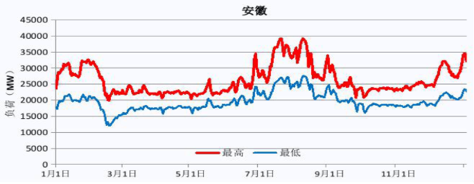 | 工作日典型負荷曲線 | 上班時間 | 安徽普遍在8:00以后開始上班 |