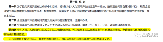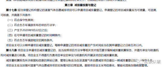 解讀:登記主體是中國(guó)境內(nèi)法人、組織可以申請(qǐng)項(xiàng)目和減排量登記。文中另外提到“符合國(guó)家規(guī)定的法人組織及自然人”,那意味著非中國(guó)公民/企業(yè)也可以參與交易?(小編不是很確定,僅猜測(cè))