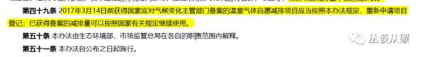 解讀:第四十九條,我覺得這里指的是之前還在備案階段的861個(gè)備案項(xiàng)目不被認(rèn)可了,要重新申請(qǐng)登記(肯定有很多項(xiàng)目面臨無法重新登記的問題了),254個(gè)開出來減排量的不影響。(來源:叢談從碳)