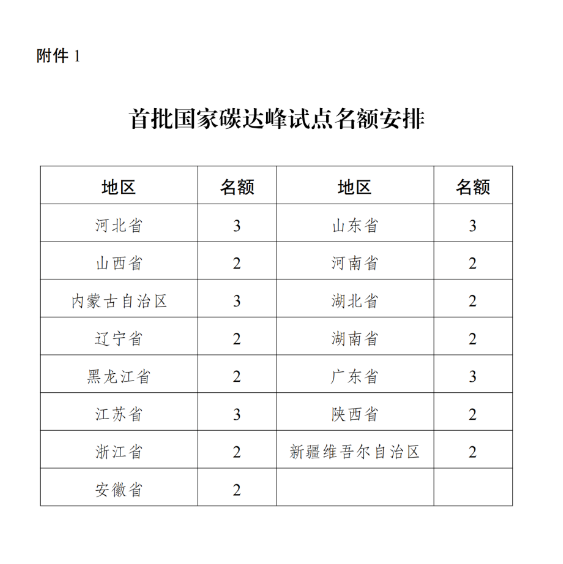 近日,國家發(fā)展改革委印發(fā)《國家碳達峰試點建設方案》(以下簡稱《方案》),統(tǒng)籌考慮各地區(qū)碳排放總量及增長趨勢、經濟社會發(fā)展情況等因素,首批在15個省(自治區(qū))開展碳達峰試點建設,共計35個名額,分別為河北省3個、山西省2個、內蒙古自治區(qū)3個、遼寧省2個、黑龍江省2個、江蘇省3個、浙江省2個、安徽省2個、山東省3個、河南省2個、湖北省2個、湖南省2個、廣東省3個、陜西省2個、新疆維吾爾自治區(qū)2個。