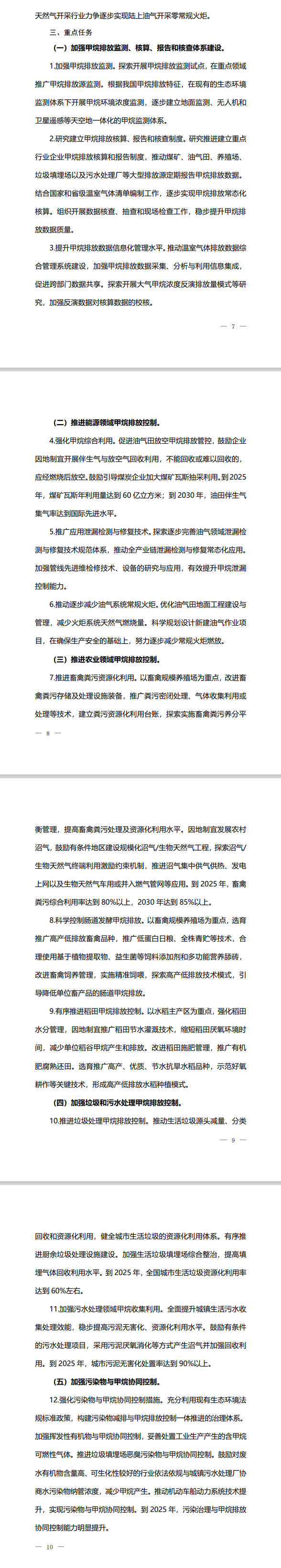 按照方案,“十五五”期間,甲烷排放控制政策、技術(shù)和標(biāo)準(zhǔn)體系進(jìn)一步完善,甲烷排放統(tǒng)計核算、監(jiān)測監(jiān)管等基礎(chǔ)能力明顯提升,甲烷排放控制能力和管理水平有效提高。煤礦瓦斯利用水平進(jìn)一步提高,種植業(yè)、養(yǎng)殖業(yè)單位農(nóng)產(chǎn)品甲烷排放強(qiáng)度進(jìn)一步降低。此后,石油天然氣開采行業(yè)力爭逐步實(shí)現(xiàn)陸上油氣開采零常規(guī)火炬。