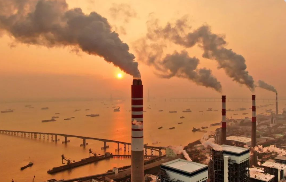 中國東部江蘇省長江邊的火力發(fā)電廠。圖片來源:Associated Press via Alamy