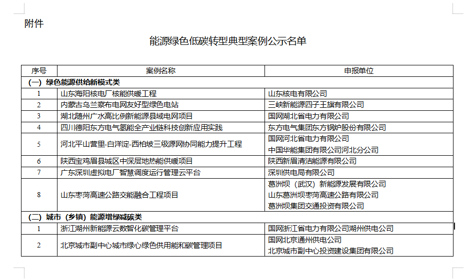 附件:能源綠色低碳轉(zhuǎn)型典型案例公示名單