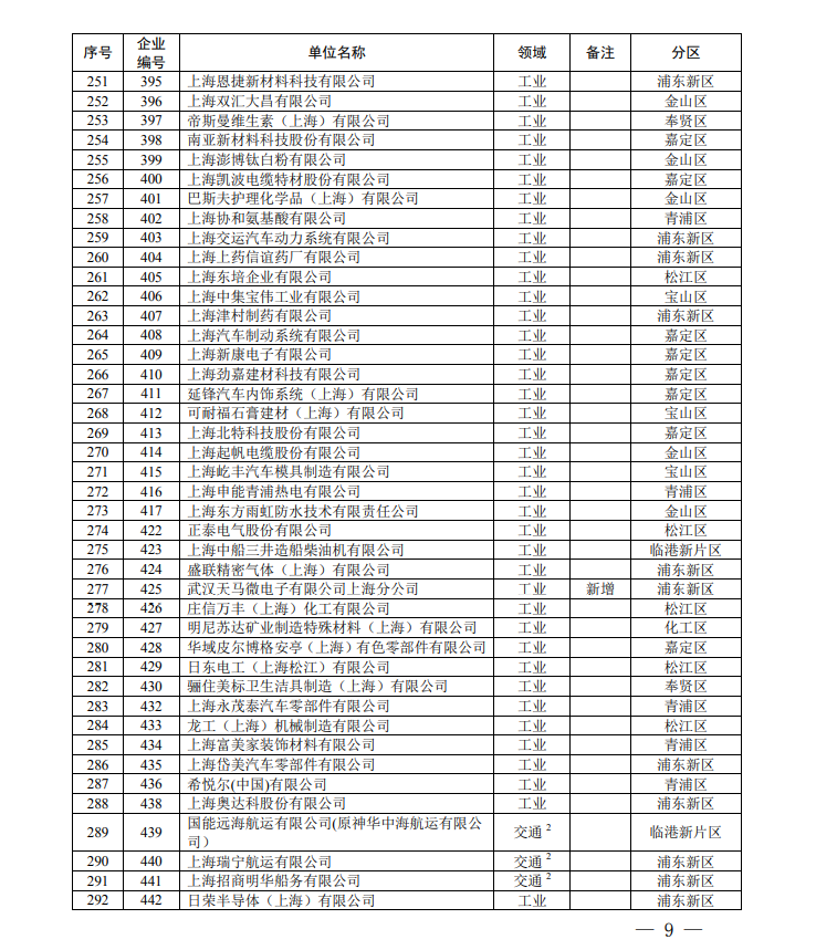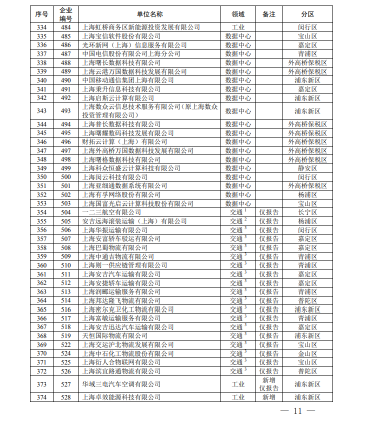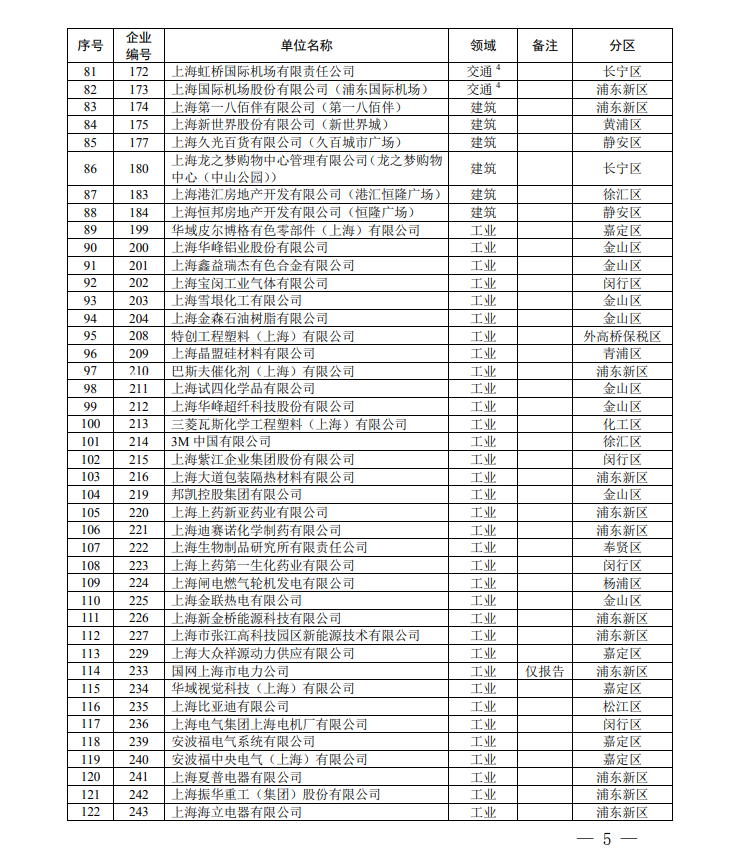 附件:1. 上海市納入2023年度碳排放配額管理單位名單