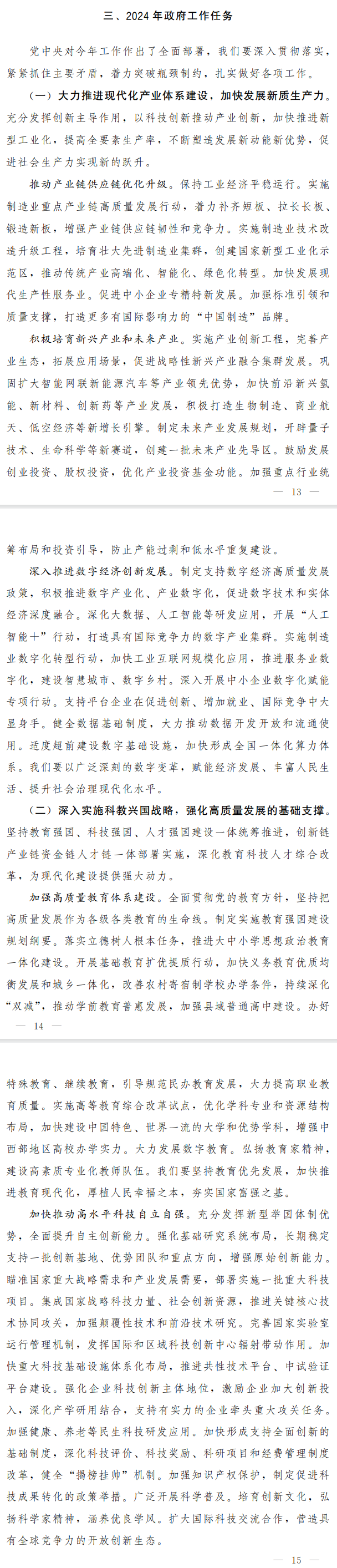 3月5日,第十四屆全國人民代表大會第二次會議在人民大會堂開幕,國務院總理李強向大會作政府工作報告。報告對2023年的工作作出了回顧,又對2024年的工作任務進行了部署。