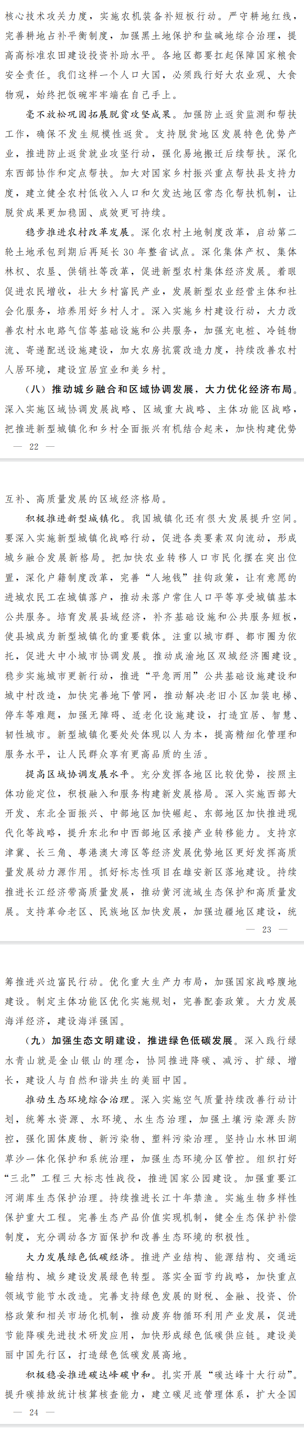 ——大力發(fā)展綠色低碳經(jīng)濟。推進產(chǎn)業(yè)結(jié)構、能源結(jié)構、交通運輸結(jié)構、城鄉(xiāng)建設發(fā)展綠色轉(zhuǎn)型。加快重點領域節(jié)能節(jié)水改造。完善支持綠色發(fā)展的財稅、金融、投資、價格政策和相關市場化機制,推動廢棄物循環(huán)利用產(chǎn)業(yè)發(fā)展,促進節(jié)能降碳先進技術研發(fā)應用,加快形成綠色低碳供應鏈。