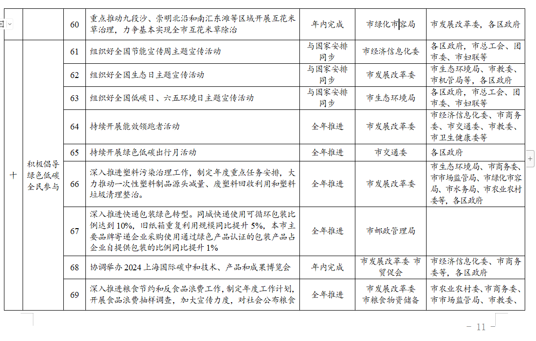 上海市2024年碳達峰碳中和及節(jié)能減排重點工作安排