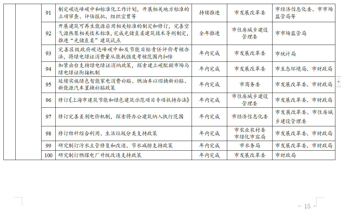 ??開展《上海市節(jié)約用水管理辦法》《清潔生產(chǎn)審核評估、驗收通則》等法規(guī)、標準修訂,啟動一批碳達峰碳中和及節(jié)能減排領域地方標準新制訂項目。修訂秸稈綜合利用、生活垃圾分類、建筑節(jié)能支持政策,研究制訂碳達峰碳中和、污水主管修復和改造、節(jié)水減排、燃煤電廠升級改造等支持政策。修訂完善差別電價機制,探索將辦公建筑納入執(zhí)行和范圍。
