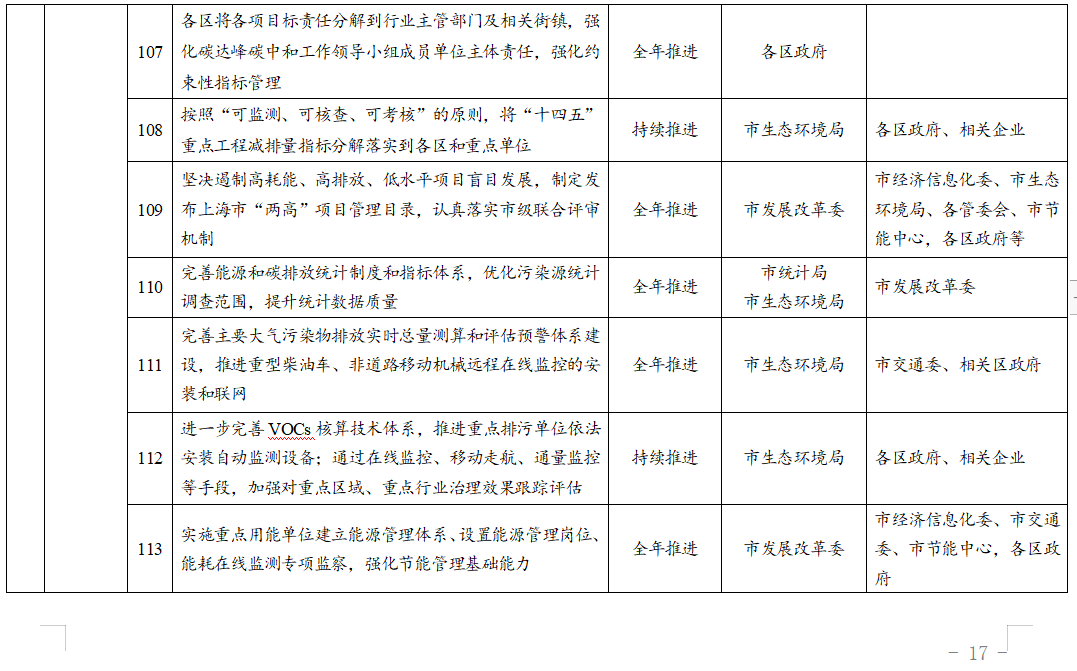 ??建立完善月度調(diào)度、季度預警、年度考核的監(jiān)測預警機制。做好“十四五”重點工程減排量指標分解。制定發(fā)布上海市“兩高”項目管理目錄,堅決遏制高耗能、高排放、低水平項目盲目發(fā)展。完善能源和碳排放統(tǒng)計制度和指標體系,優(yōu)化污染源統(tǒng)計調(diào)查范圍,提升統(tǒng)計數(shù)據(jù)質(zhì)量。