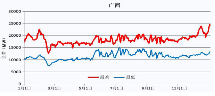 | 全年日最高、最低負(fù)荷曲線 | 用電最高 | 12月冬季相對(duì)寒冷時(shí)用電量最高 |