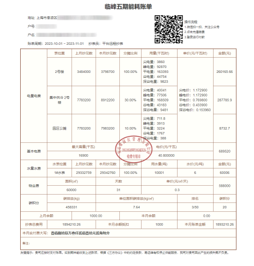 碳無憂平臺-能耗賬單