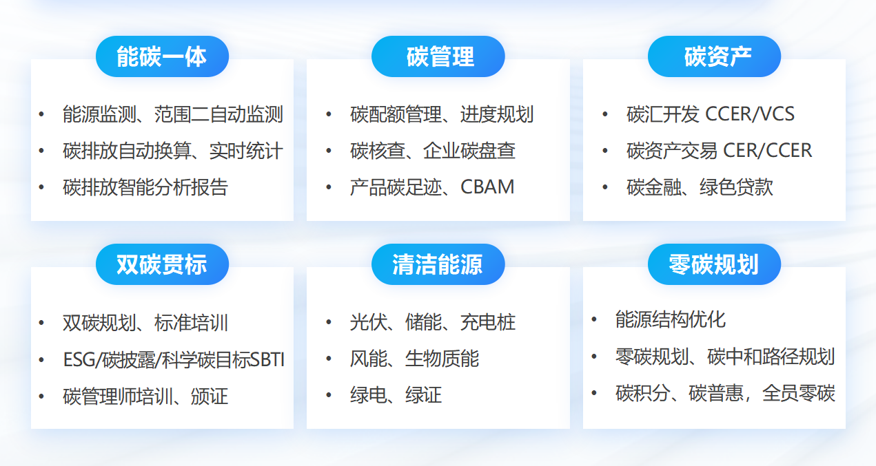 千瓦科技提供全方位的雙碳服務(wù),不僅針對(duì)碳市場(chǎng)相關(guān)主體,更覆蓋除碳市場(chǎng)之外更廣泛的場(chǎng)景與對(duì)象,業(yè)務(wù)包括但不限于碳監(jiān)控、碳管理、碳盤查、碳足跡、碳積分、碳資產(chǎn)開發(fā)、碳培訓(xùn)、碳申報(bào)、碳認(rèn)證、ESG信息披露等,助力各類主體開展碳中和建設(shè)。