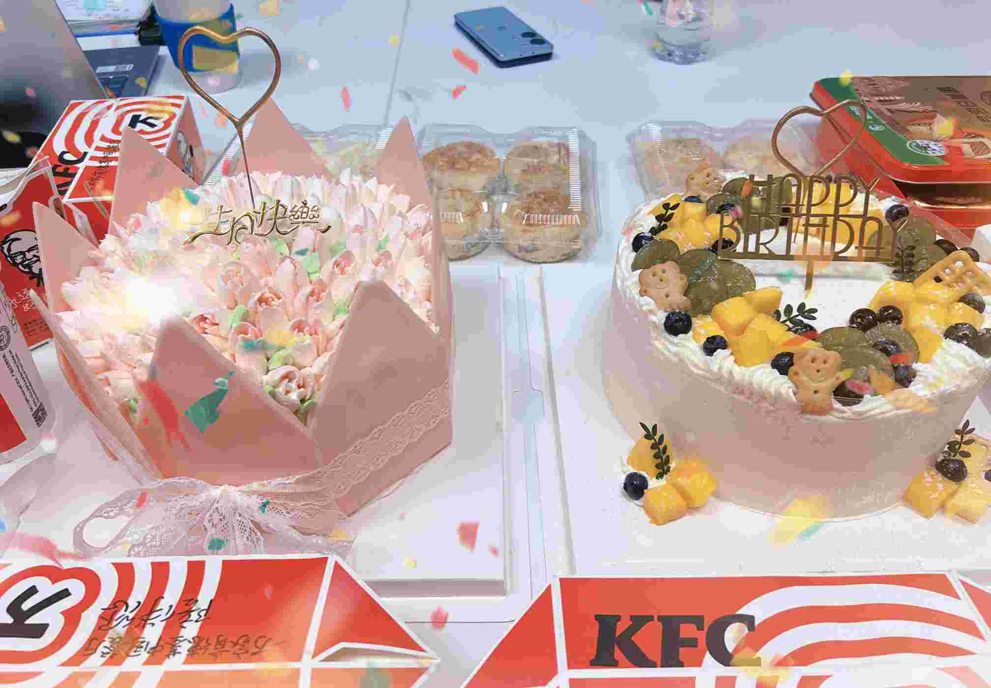 經(jīng)過團(tuán)隊小伙伴精心的策劃與布置,生日會現(xiàn)場充滿了溫馨和輕松的氣氛。每一處都透露著對壽星們的關(guān)懷與祝福:人手一杯的奶茶、兩個香甜誘人的大蛋糕、熱氣騰騰的肯德基套餐、不同口味和類型的月餅……