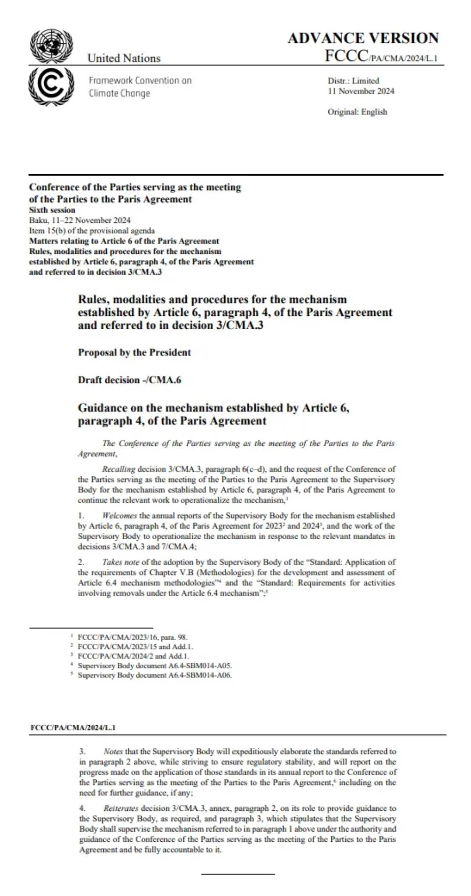 就在剛剛,COP29會(huì)議上各締約方就《巴黎協(xié)定》第6.4條機(jī)制下的碳信用創(chuàng)建標(biāo)準(zhǔn)達(dá)成共識(shí),為全球各國(guó)正式開(kāi)展碳交易奠定了堅(jiān)實(shí)基礎(chǔ),是全球碳市場(chǎng)的歷史性時(shí)刻。