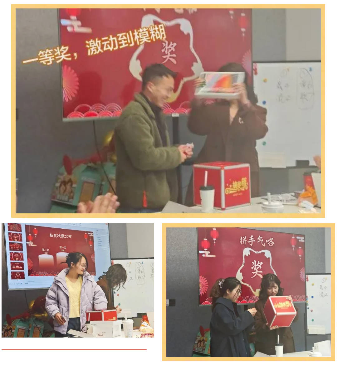 最激動(dòng)人心的抽獎(jiǎng)環(huán)節(jié)怎能錯(cuò)過!針對此次抽獎(jiǎng)活動(dòng),公司精心準(zhǔn)備了平板、手表等豐厚的獎(jiǎng)品,抽獎(jiǎng)箱在眾人期盼目光中搖晃,每個(gè)人心懷忐忑與期待,揭開屬于自己的那份驚喜(或驚嚇)。