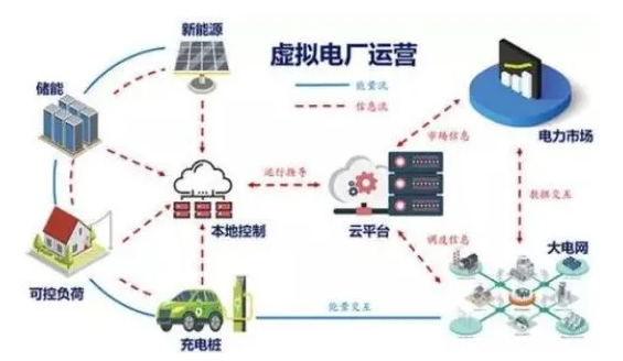 虛擬電廠是一種通過先進信息通信技術(shù)和軟件系統(tǒng),實現(xiàn)DG、儲能系統(tǒng)、可控負(fù)荷、電動汽車等DER的聚合和協(xié)調(diào)優(yōu)化,以作為一個特殊電廠參與電力市場和電網(wǎng)運行的電源協(xié)調(diào)管理系統(tǒng)。