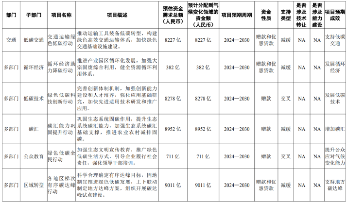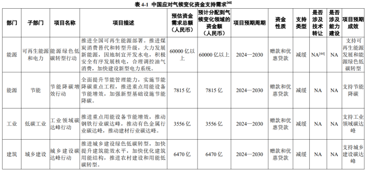 而在披露的中國應(yīng)對氣候變化資金需求支持方面,能源預(yù)估資金需求總額最高,達(dá)6萬億元以上。
